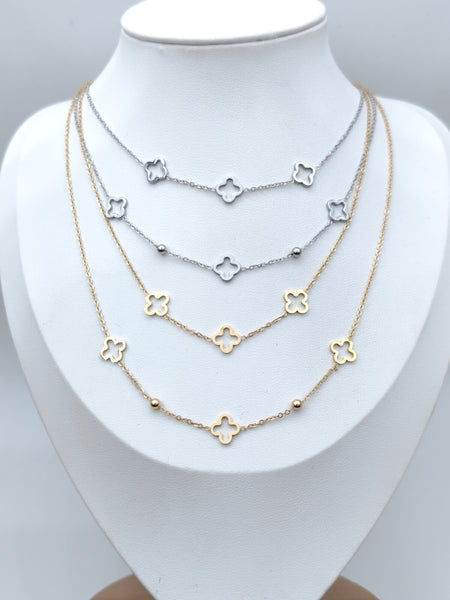 The Layered Clover Necklace showcases a simple, elegant design with multiple clover charms. Drawing on Irish symbolism, it offers a subtle way to carry a token of luck and heritage. Its minimalist style suits both casual and formal looks. Available in gold or silver.